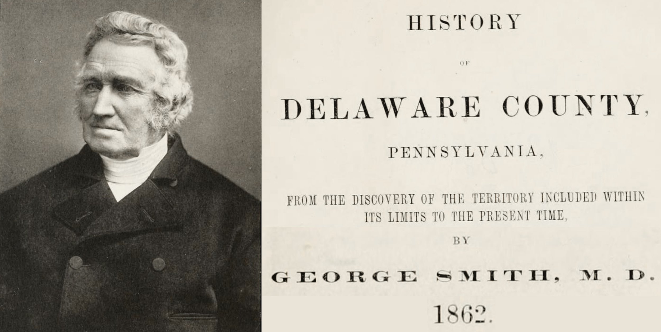 Above: Portrait of Dr. George Smith and the title page of the Delaware County history he authored. Image source: Internet Archive