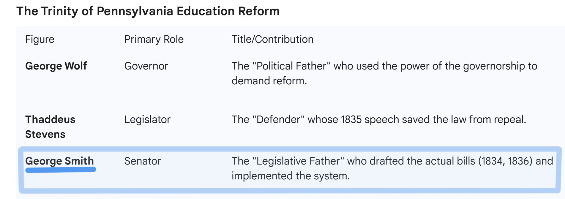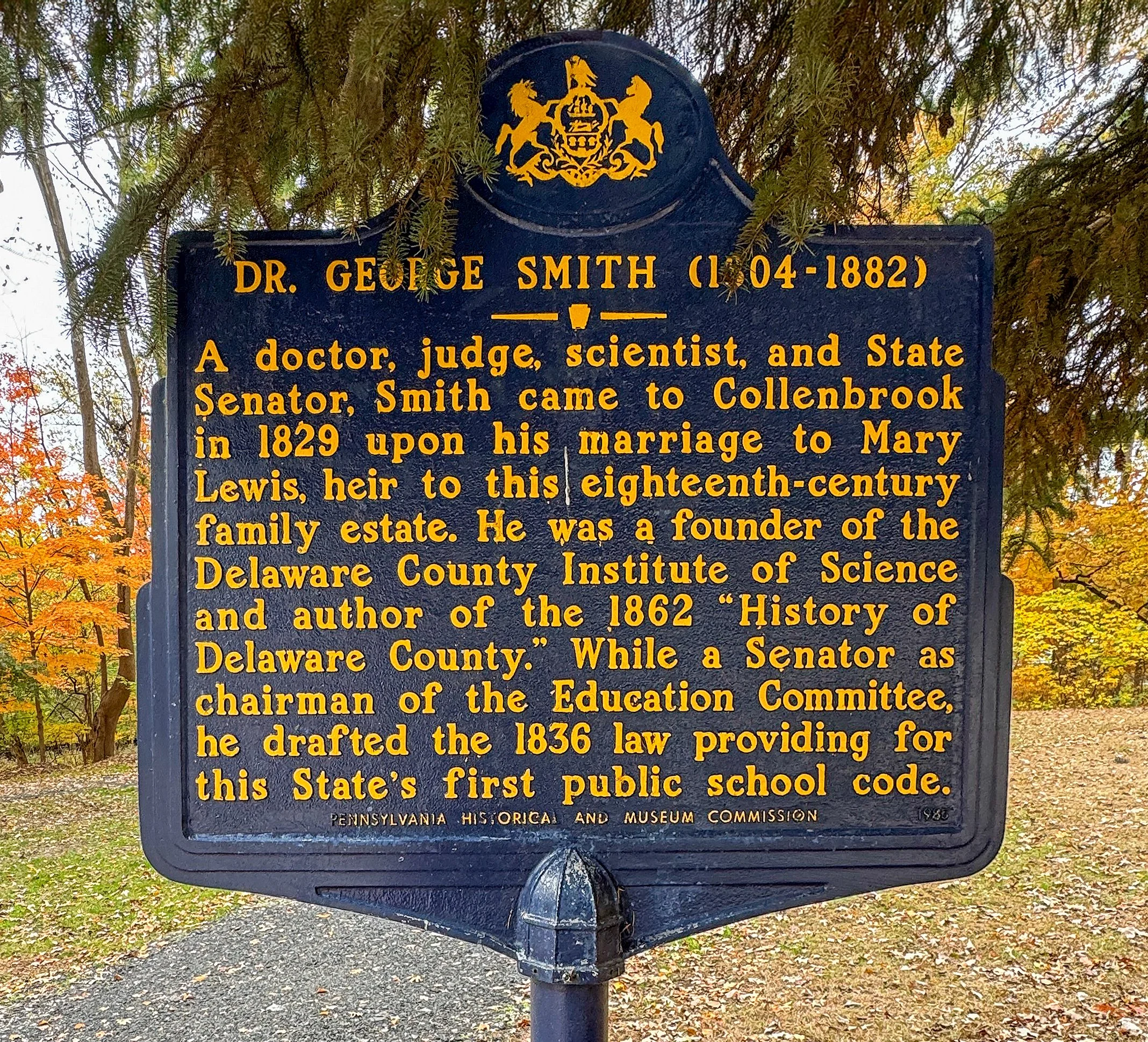 When Dr. Smith was a Pennsylvania senator, he served as Chairman of the Education Committee, where he personally drafted the Free School Act of 1834 and its subsequent 1836 amendment. For 25 years, he presided over the Upper Darby School Board, overseeing the local implementation of the laws he had authored.