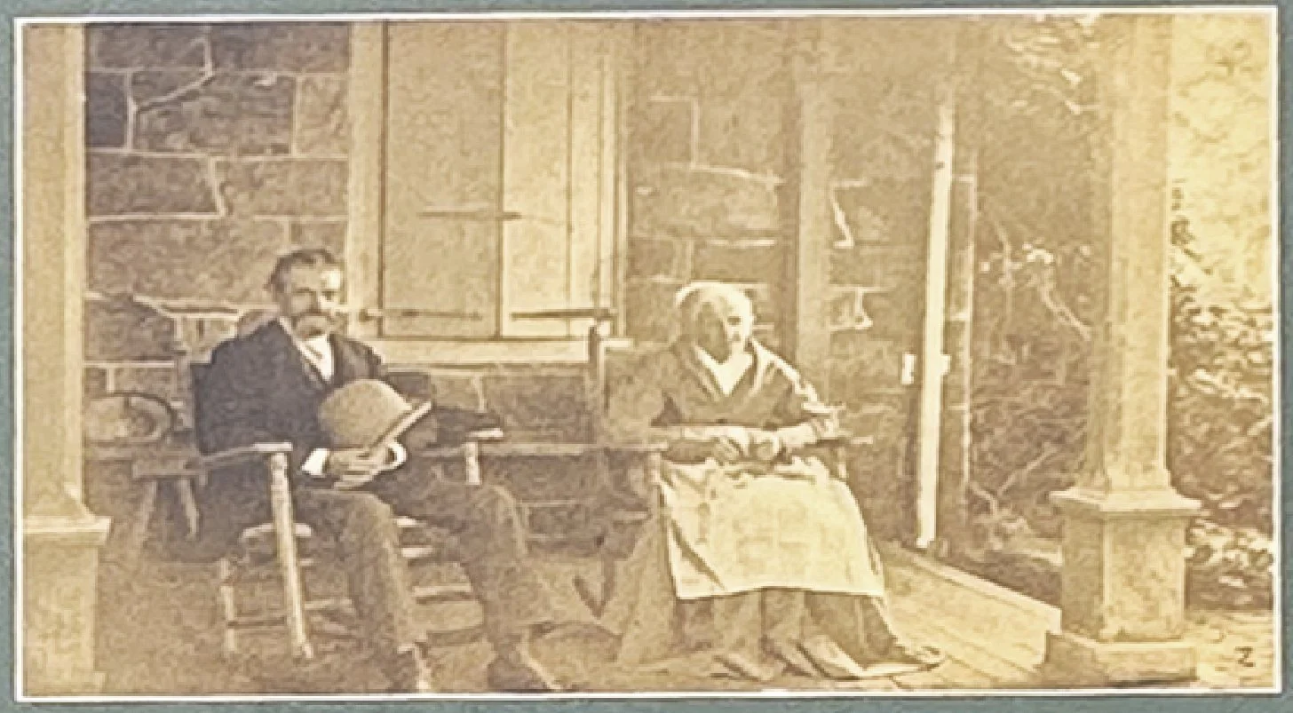 Mary Smith lived here her entire life, from 1808 to 1892. Her parents Abraham Lewis III and Rebecca (Lawrence) Lewis had built most of this farmhouse. She sits on the front porch with her oldest son, attorney Abraham Lewis Smith. The photographer was Mrs. Smith’s grandson, Henry Clement Smith.