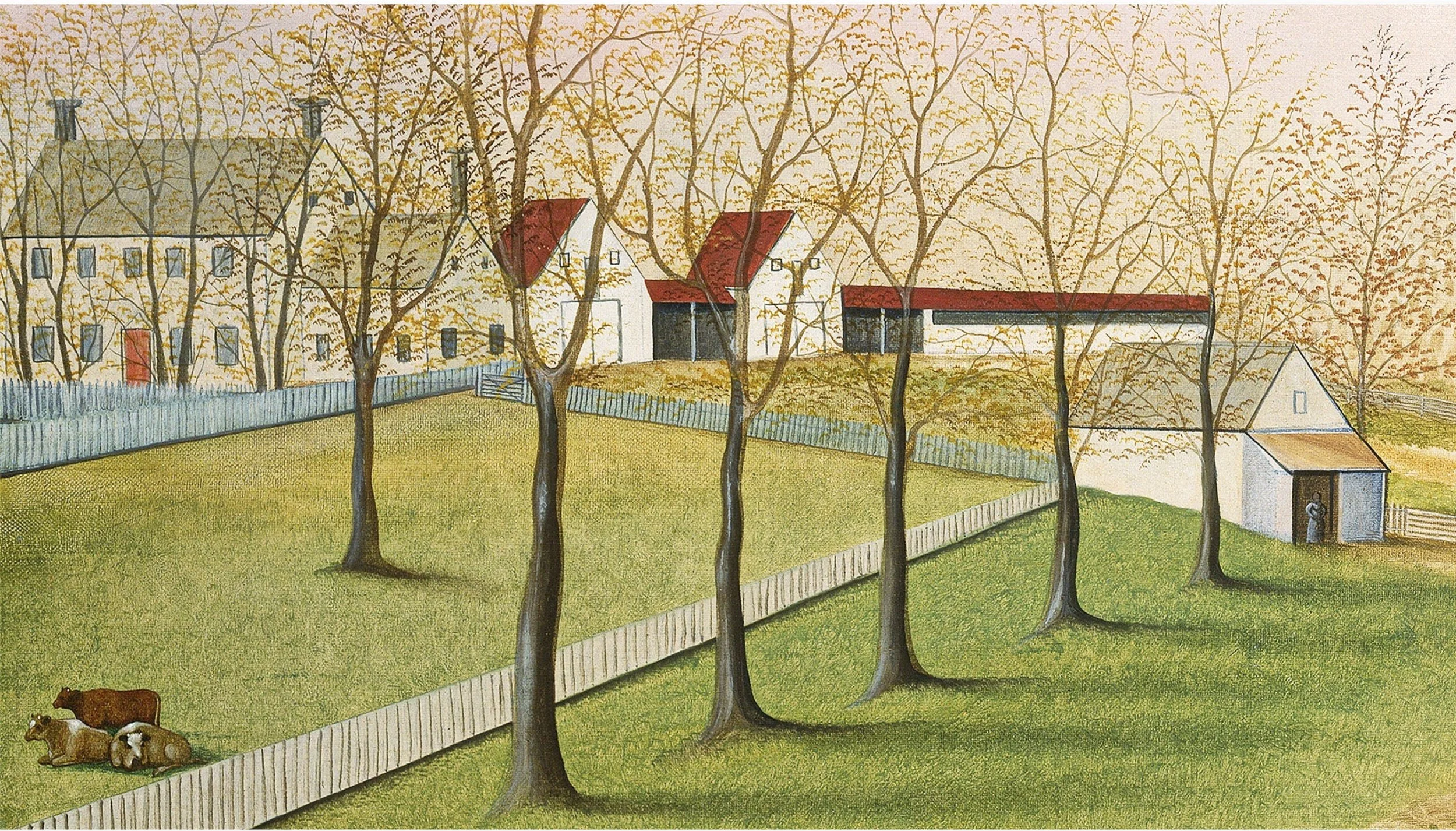 Above: The Cornell Farm. Inscribed: "An Indian summer view of the Farm & Stock OF JAMES C. CORNELL of Northampton Bucks county Pennsylvania. That took the Premium in the Agricultural society, October the 12, 1848 Painted by E. Hicks in the 69th year of his age." Image source: National Gallery of Art