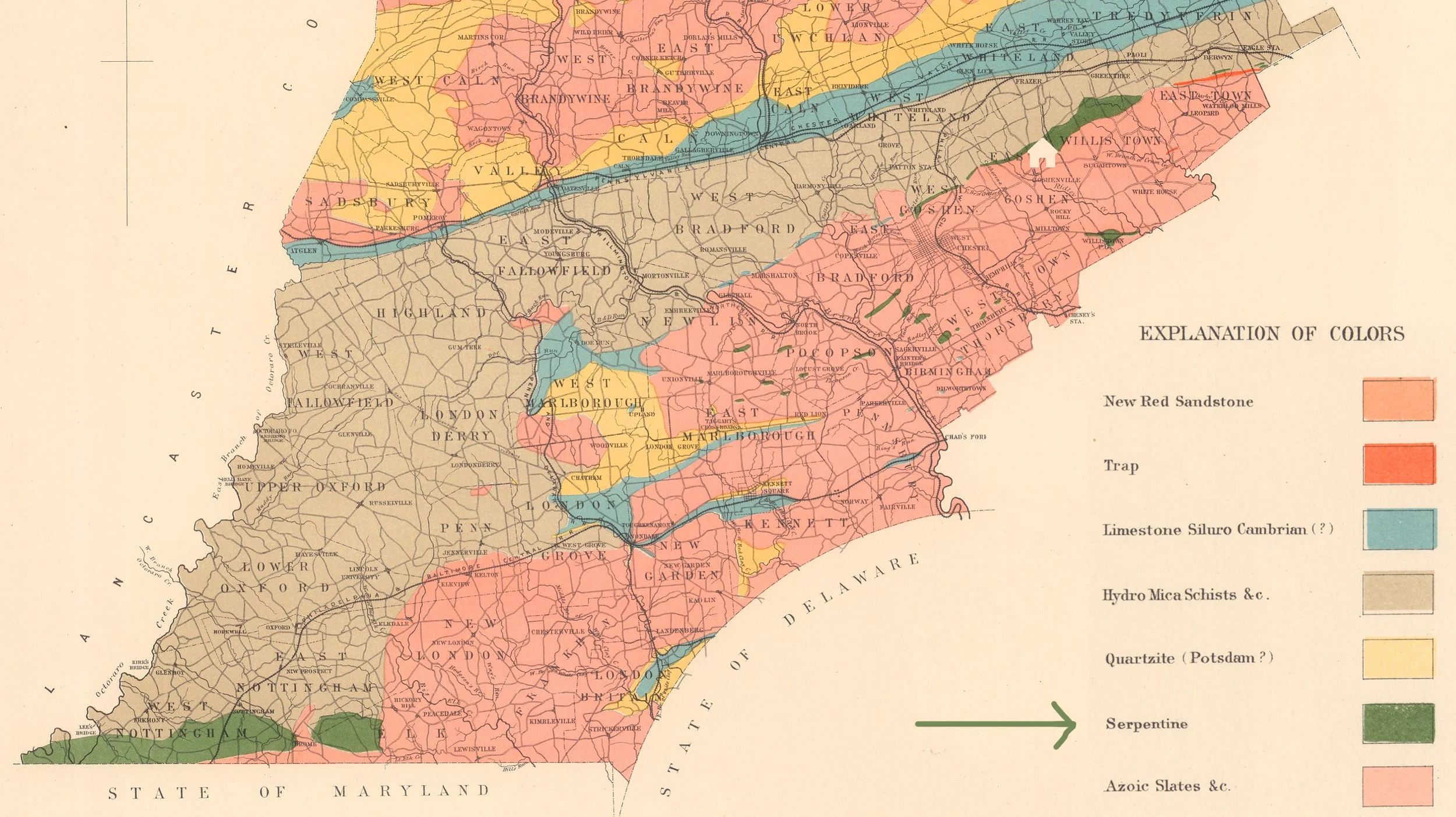 Above: Image source: Geological Map of Chester County, Pennsylvania, Geological Survey of Pennsylvania, 1880, David Rumsey Map Collection