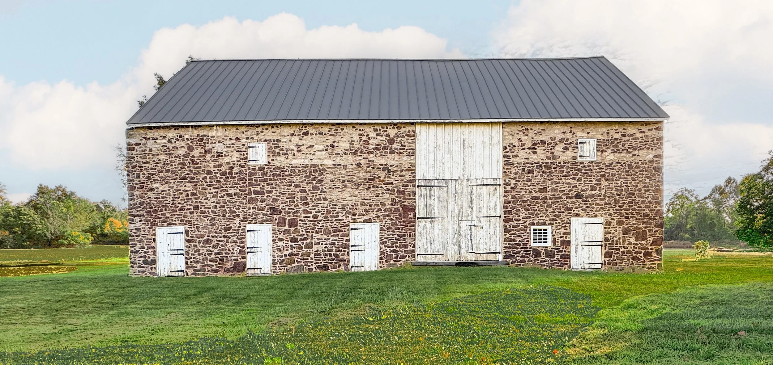 Above: Owners of Hope Lodge modified the barn several times. Jacob Wentz enlarged the barn sometime after 1832. The doors lead to the threshing floor. Image source: Lee J. Stoltzfus