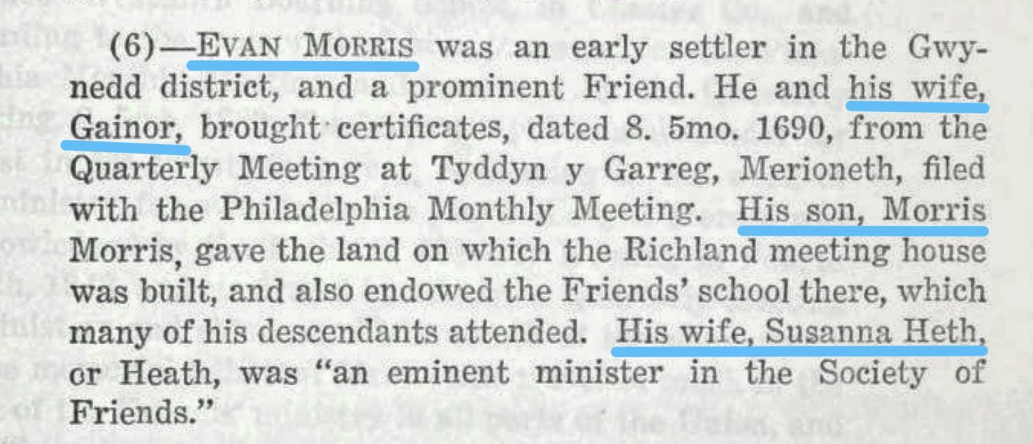 Above: Text image source: The Griffith, Hugh, Pugh and Morris Families of Gwynedd Friends Meeting…, James A. Quinn, 2008, FriendsJournal.org
