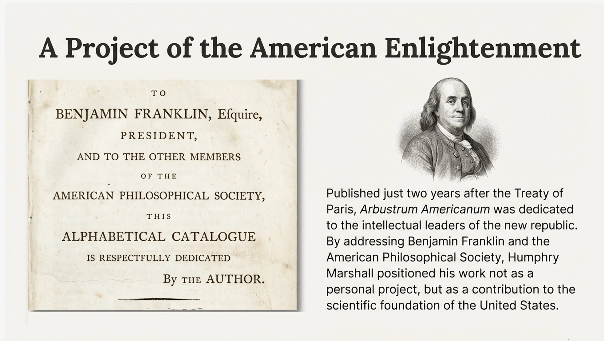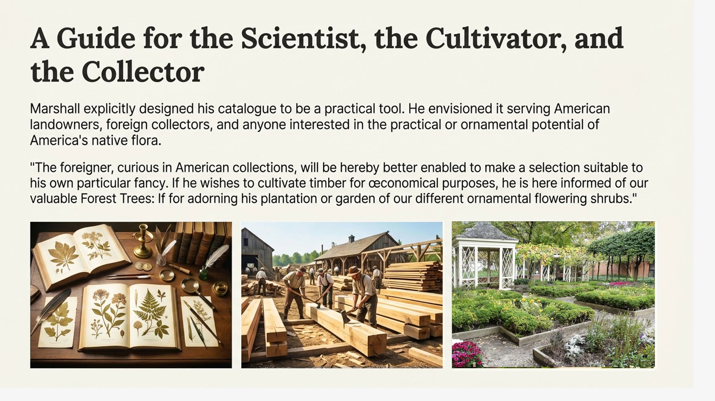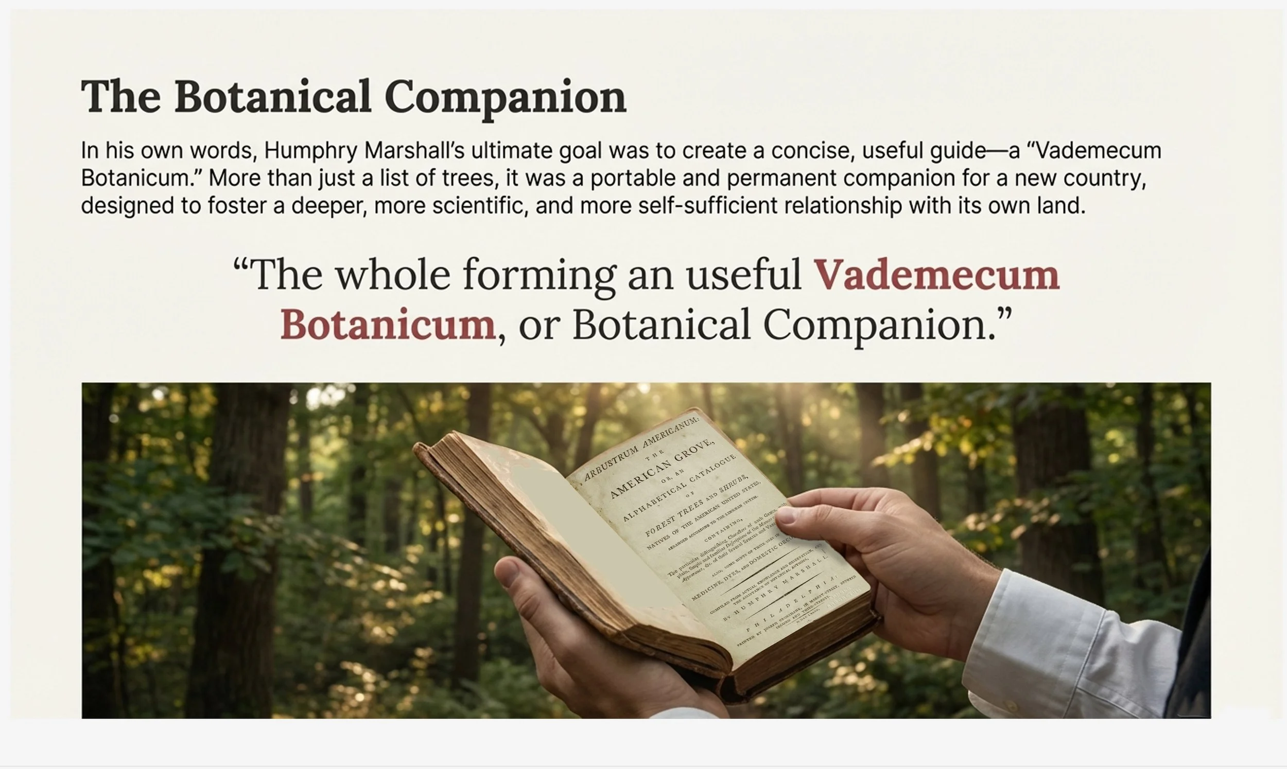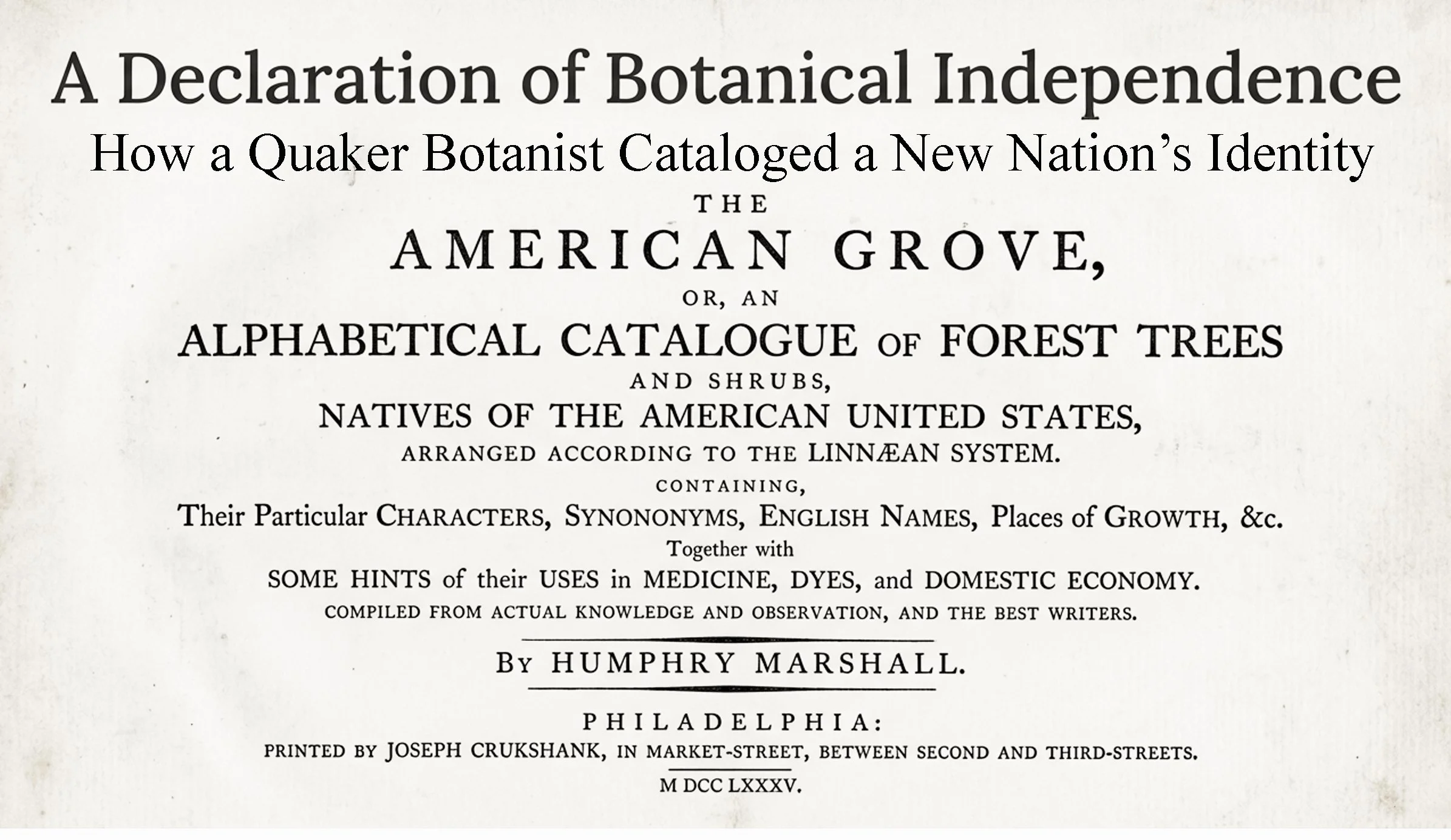 Above: Quaker Botanist Humphry Marshall and his landmark study of American trees and shrubs. Infographic image: Lee J. Stoltzfus and NotebookLM