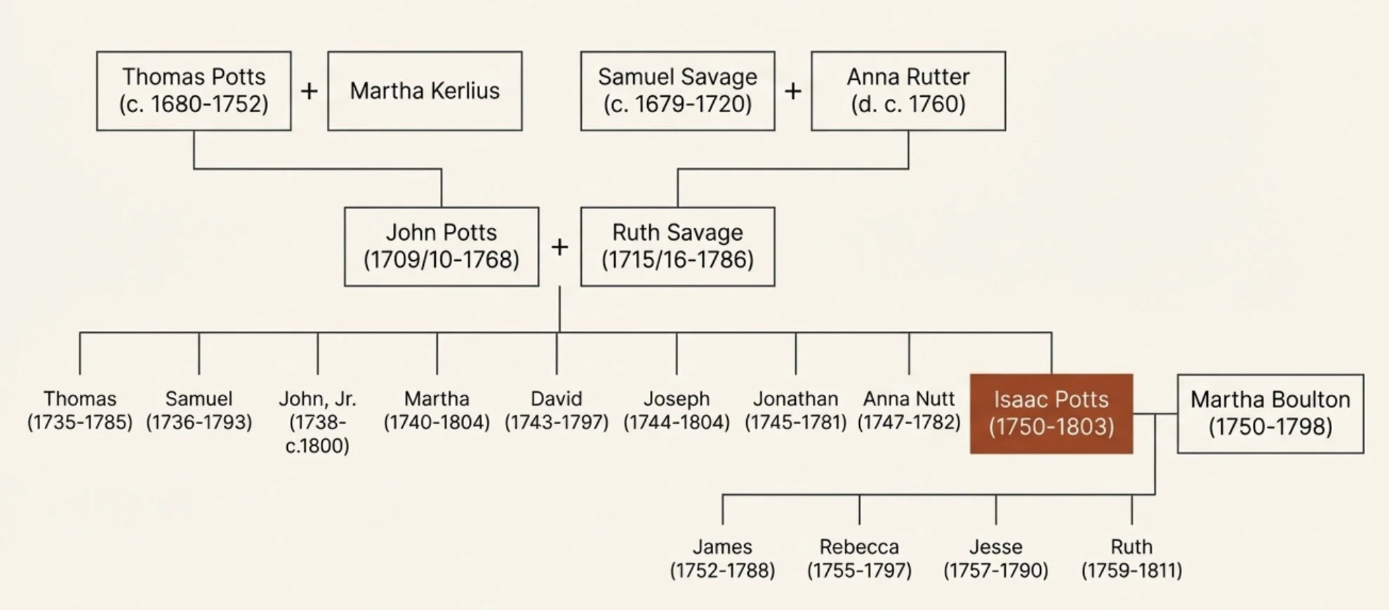Isaac Potts’ Quaker Family Tree: