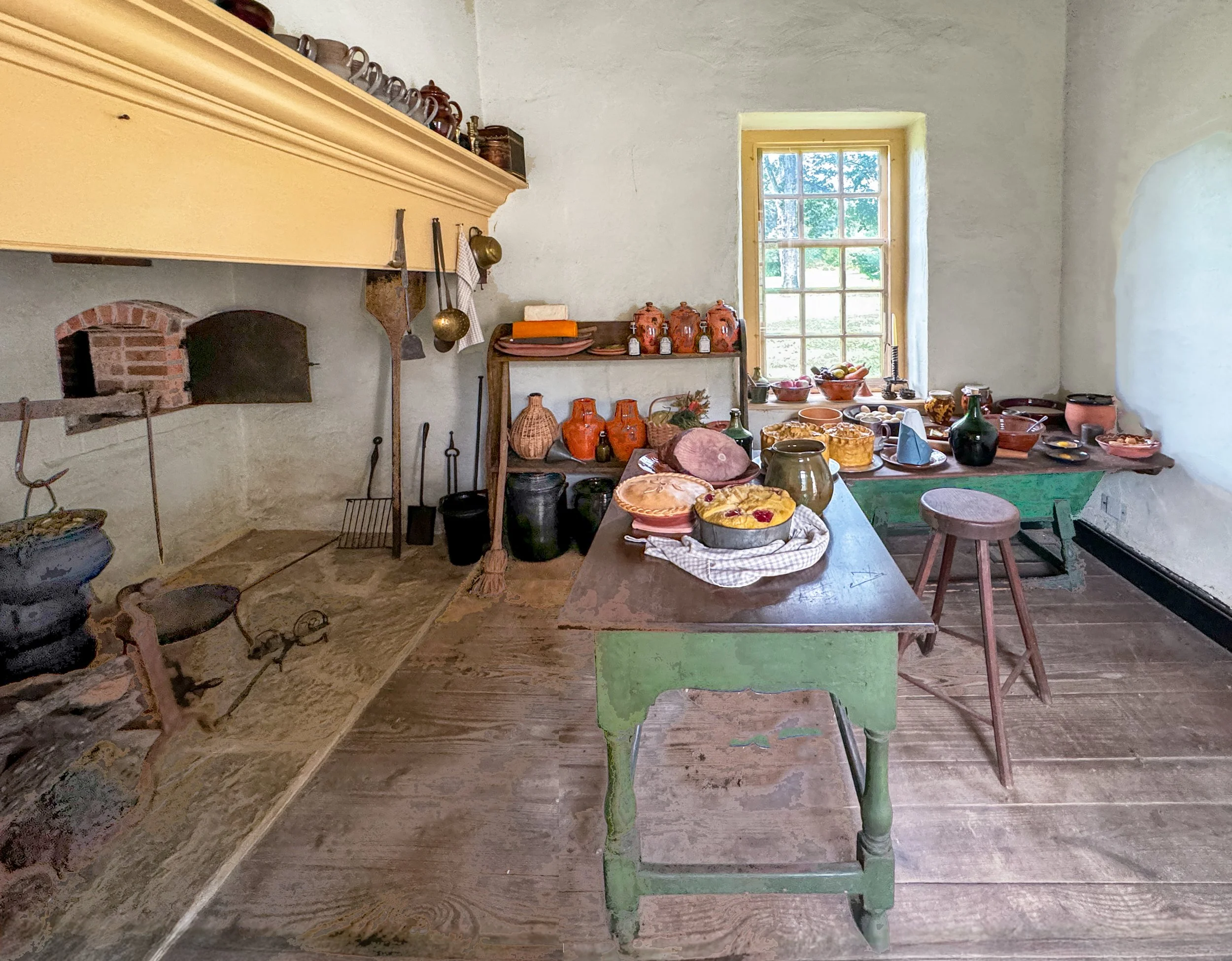 A stretcher-base table and a dough box hold pies in the kitchen of the Potts House / Washington’s headquarters. Image source: Lee J. Stoltzfus