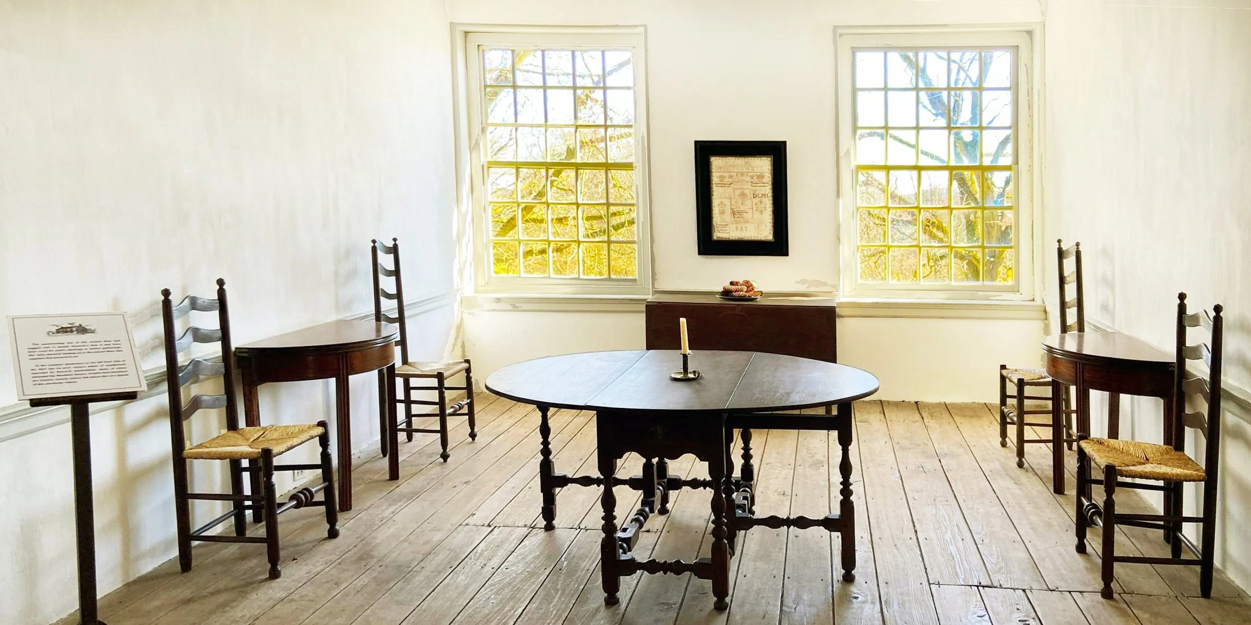 Primitive Hall has an outstanding collection of antique furniture original to this house or to the Pennock family. Some pieces of furniture in this house museum have never left the home, while other pieces came back to the house through Pennock descendants. Image source: PrimitiveHall.org