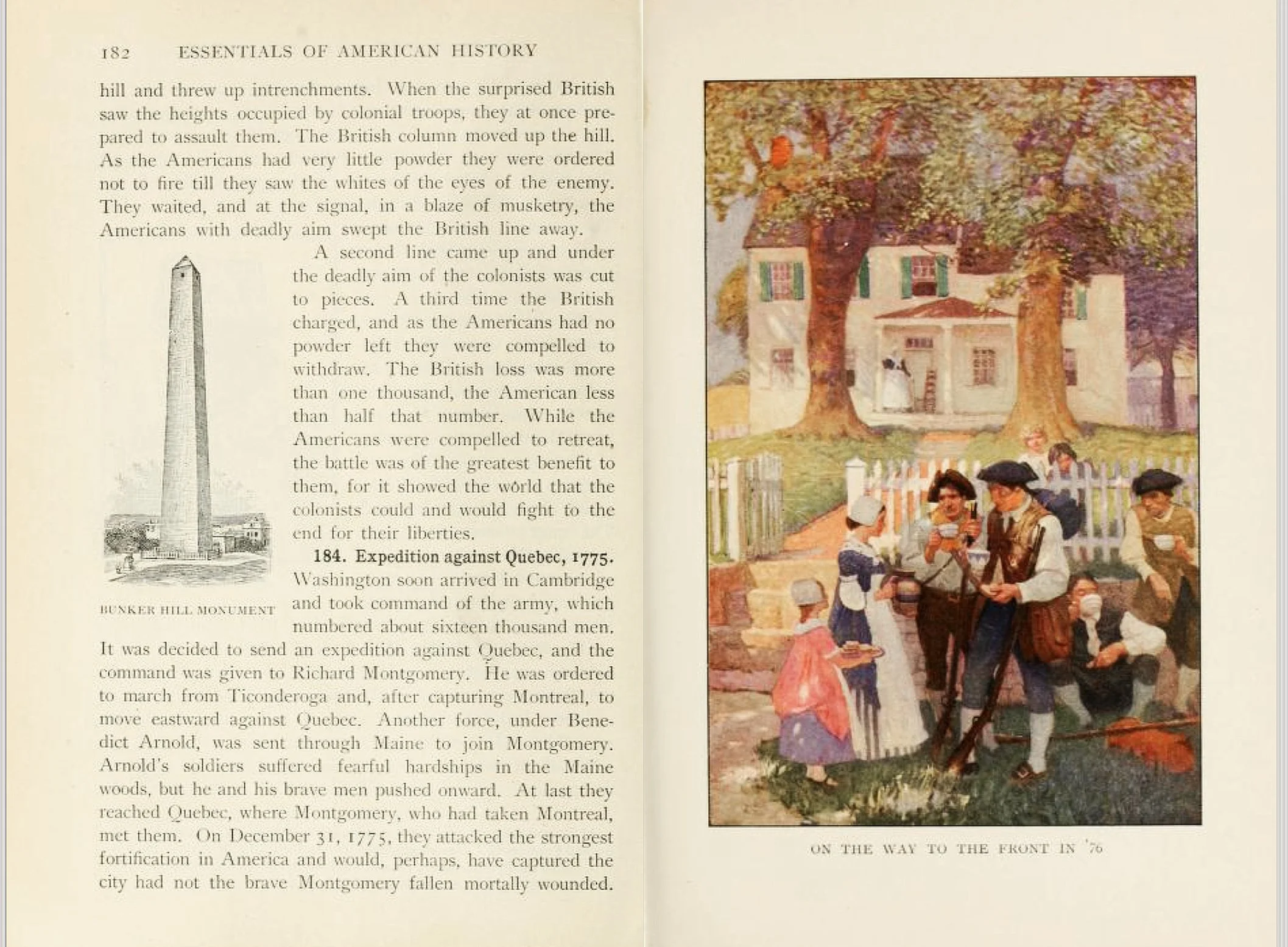 Above: N. C. Wyeth’s illustration On the Way to the Front in ‘76 appears in the 1918 history textbook Essentials of American History by Thomas Lawler. The painting depicts Continental soldiers heading toward the frontline. The Ring house / Washington’s Headquarters is in the background. The artist N. C. Wyeth was the most famous student of the Howard Pyle Art School. This Ring house was a boys’ residence for that summer school.