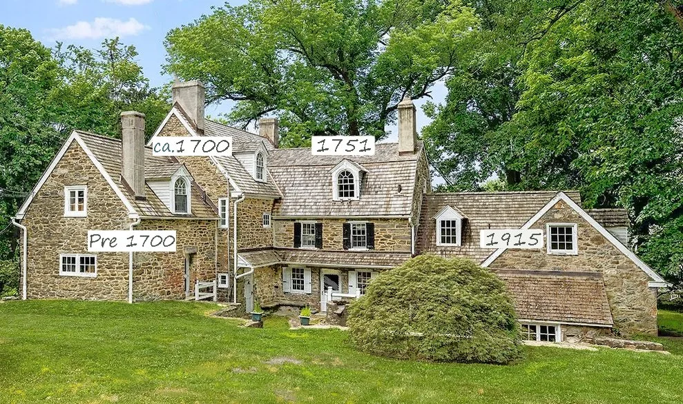 Above: The Sharpless House evolved as an additive house, with multiple additions over time. Southeast Pennsylvania is home to countless historic homes that look like a collection of additive building blocks of different heights. Image source: Bright MLS (dates added).