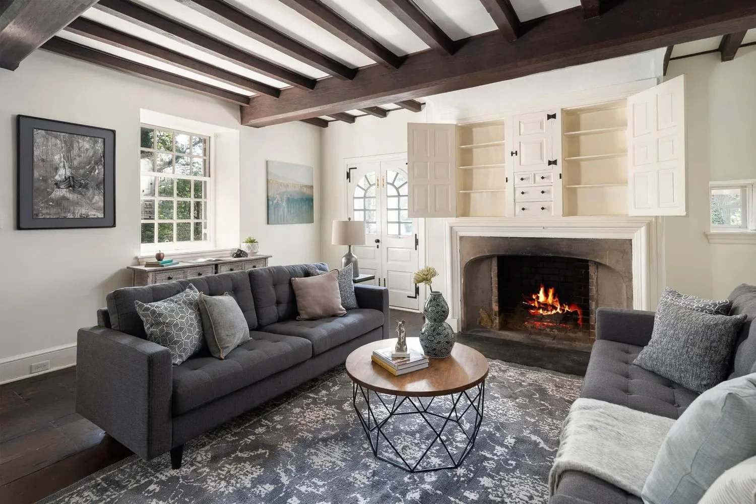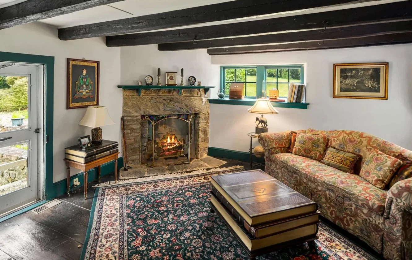 Above: The corner fireplace in the pre-1700 “weave room.” This corner fireplace represents the Swedish tradition of fireplace placement in room corners, rather than centered on gable walls. Image source: Bright MLS
