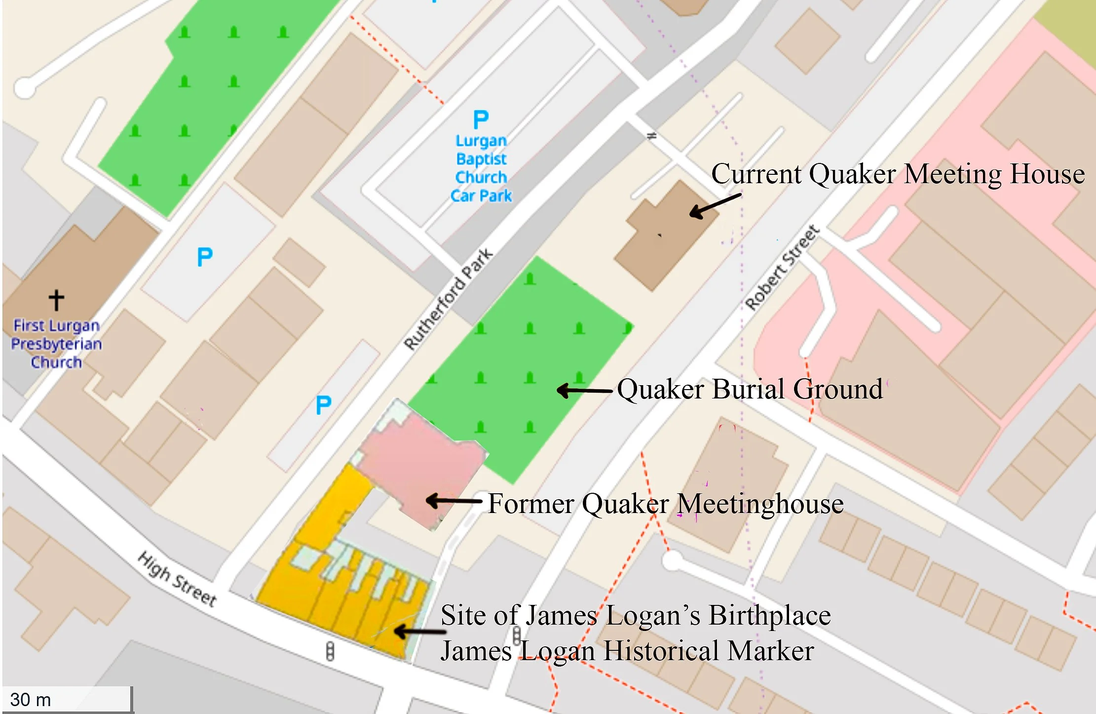 Map of Quaker Meeting Houses in Lurgan, Northern Ireland