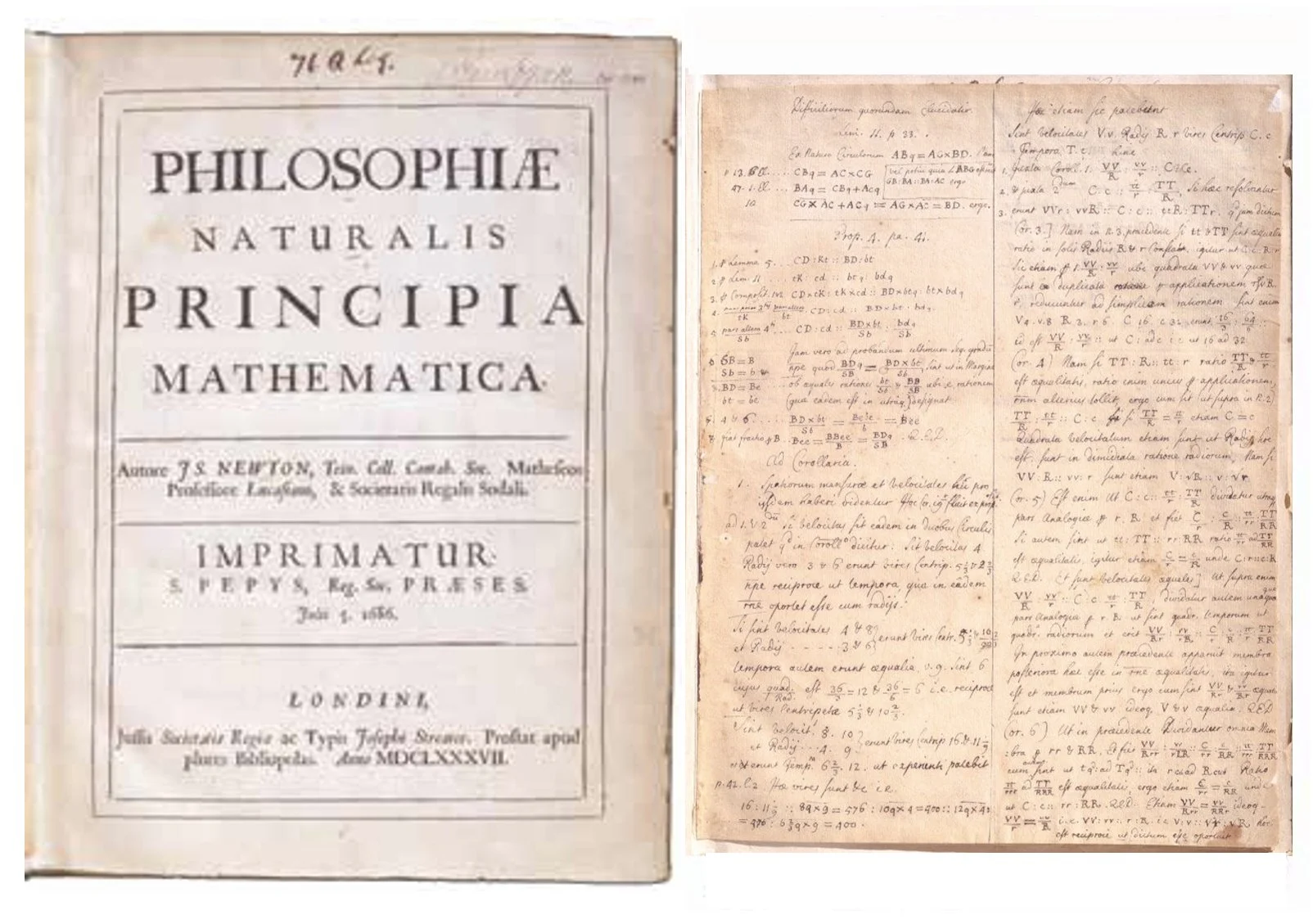 Logan’s books: Above left: Isaac Newton, Philosophiæ Naturalis Principia Mathematica. London, 1687. Right: Difficiliorum quorundam Elucidatio: Manuscript explanations by James Logan of Newton’s principles, tipped into the front of the Principia. Image source: Library Company