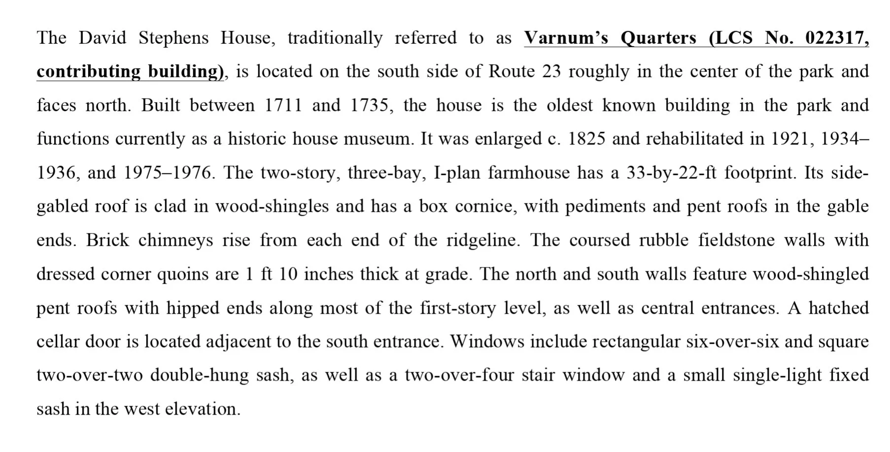 Above text: Historic Furnishings Report Varnum’s Quarters, John P. Brucksch, 1993. Internet Archive