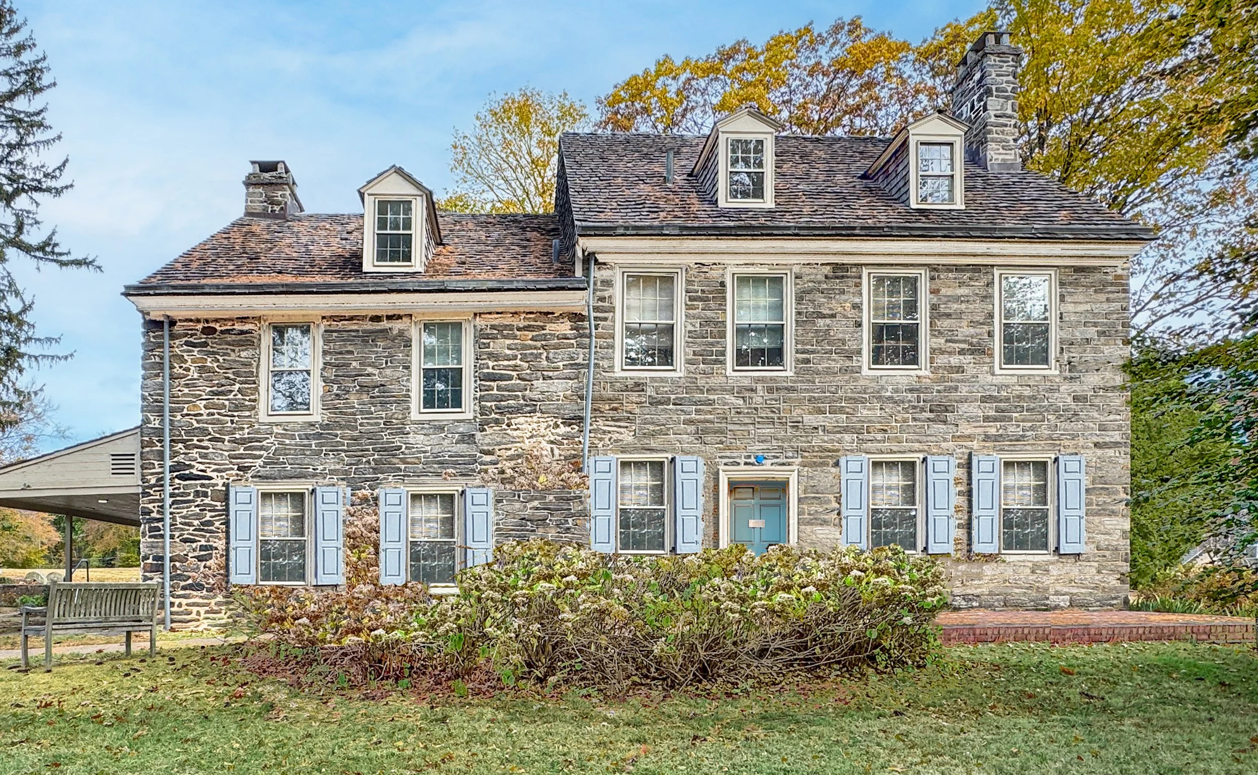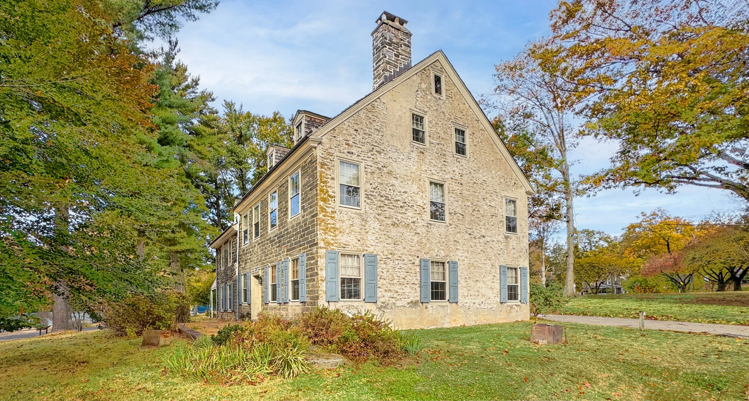 Many historic buildings throughout Southeeast Pennsylvania showcase this distinctive building stone. Historic Quaker houses in Germantown, such as Grumblethorpe, are other well know examples of houses built with Wissahickon Schist. The Bartram House at Bartram’s Garden is another landmark Quaker house constructed with this stone.