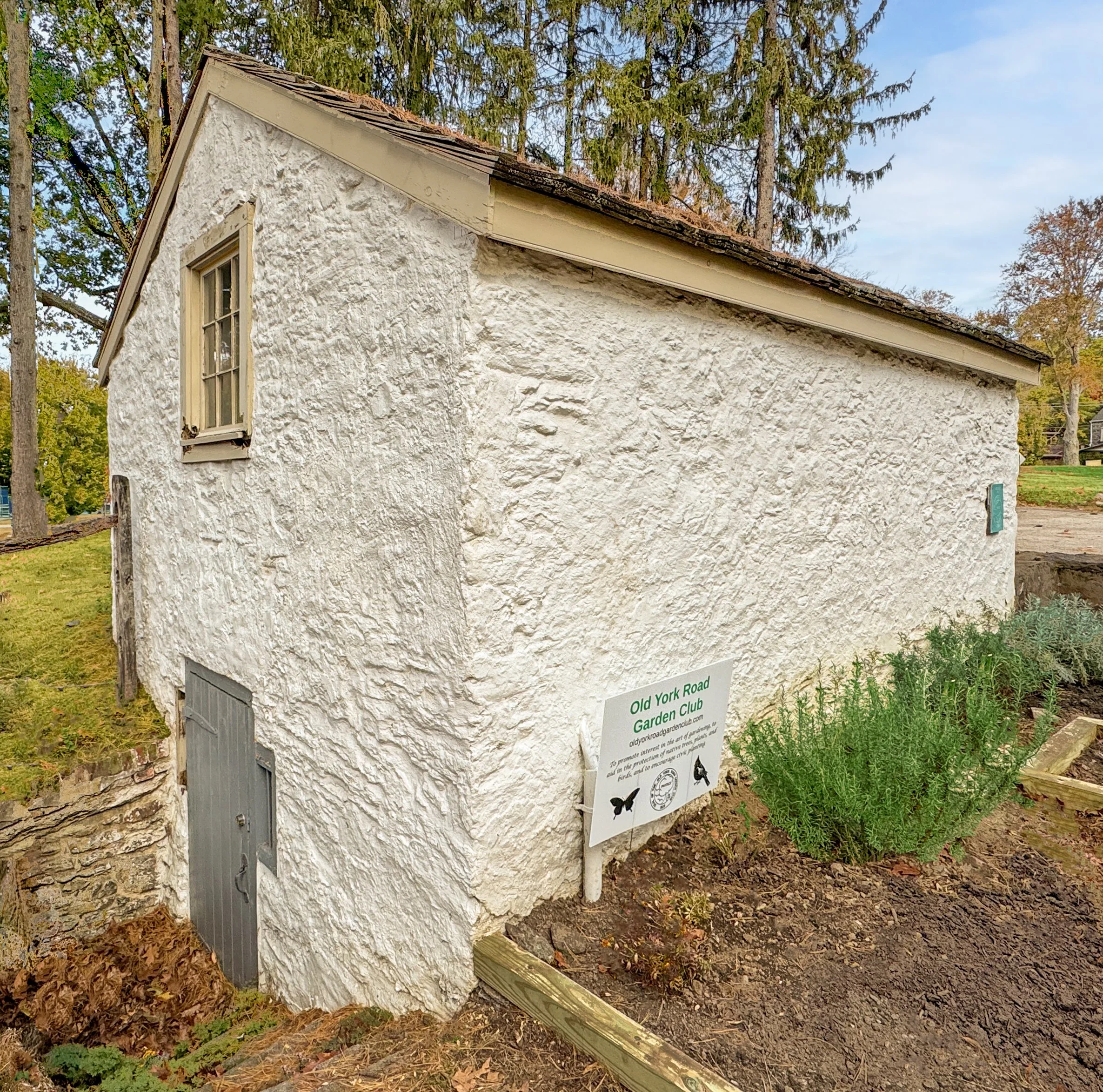 The former log house here at this site was among the earliest known places where Friends met in Pennsylvania. The Wall family built that log home / meetinghouse in 1682, and modified the house with additions over time.