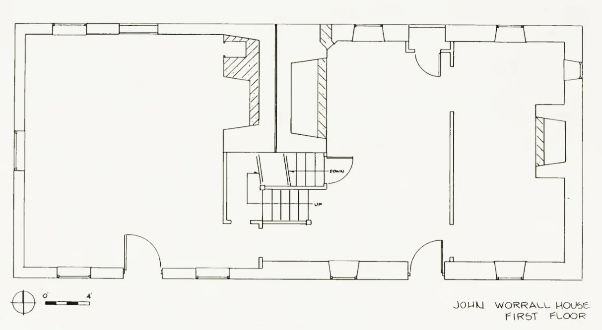 Above: Floorplan of the Worrall House. Image source: Preservation in Ridley Creek State Park, Jeffrey Robert Barr, 1993, Internet Archive:
