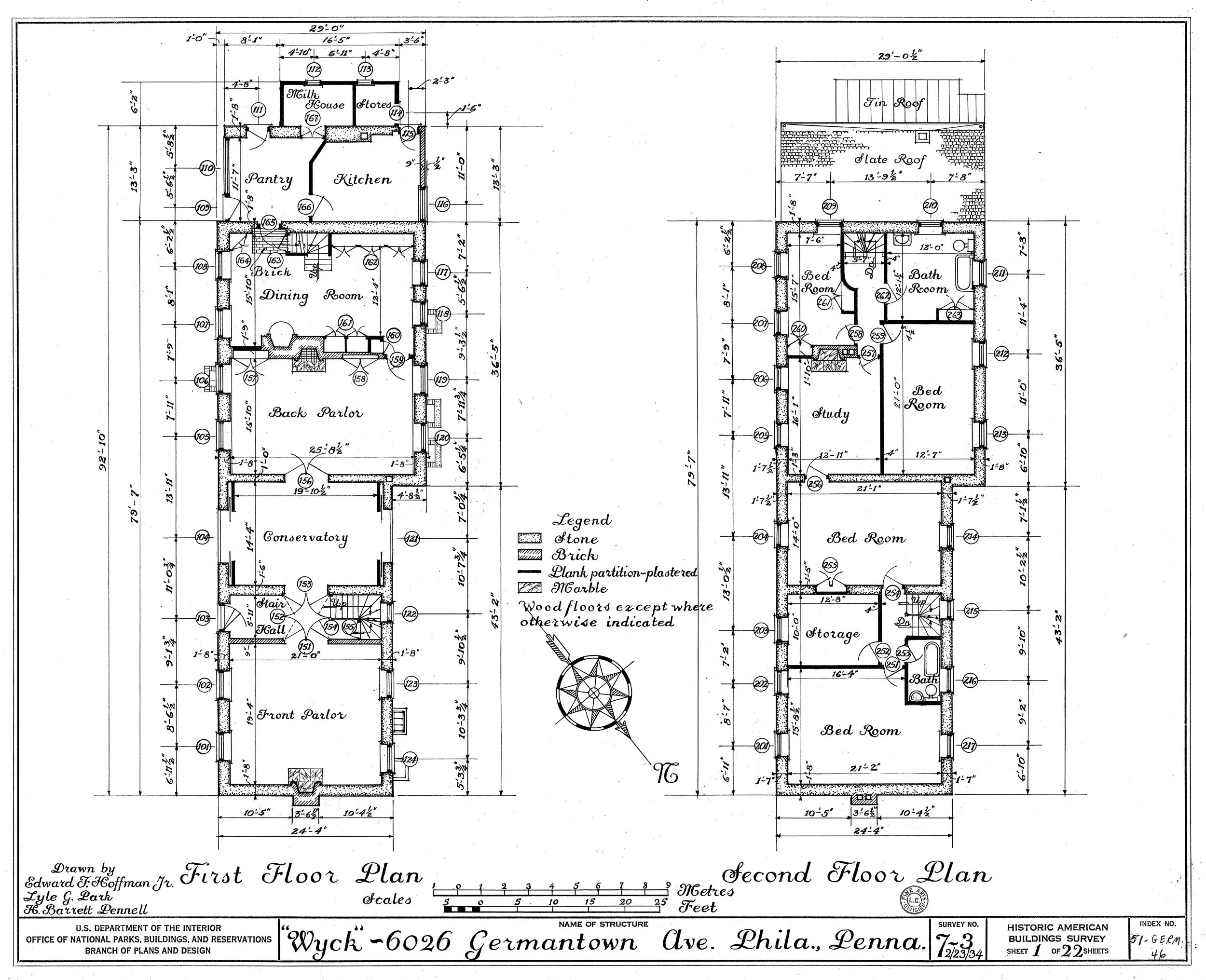 Above: Floorplans of Wyck drawn by Edward F. Hoffman, Lyle G. Park, and H. Barrett Pennell. Image source: HABS